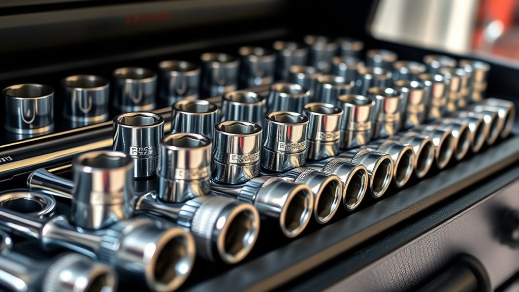 Looking for the best socket wrench sets for your toolbox in 2025? I recommend high-quality options like the Egofine 46-piece set, DEWALT impact set, and CRAFTSMAN’s metric toolkit for durability and versatility. These sets feature durable materials like chrome vanadium steel, precise laser-etched markings, and a variety of sizes to cover most projects. If you want reliable tools that last, explore these picks in detail—they’ll help you choose the perfect set for your needs.