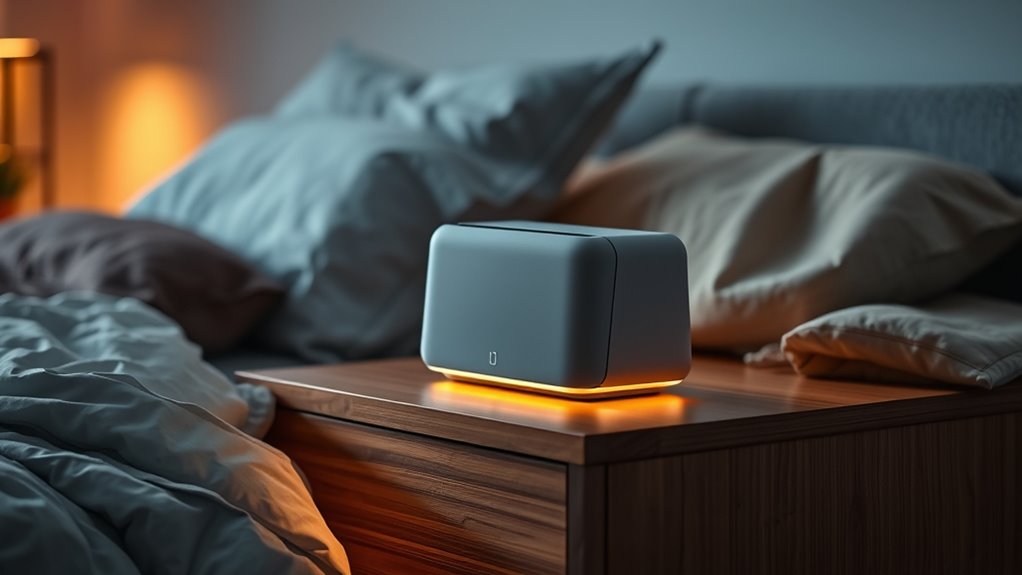 Think of sound machines as a gentle shield, but they aren’t one-size-fits-all. If you’re a light sleeper or sensitive to noise, choose models with adjustable volume, softer sounds, and noise-canceling features. I’ve found that starting with low volume and soothing sounds helps me, and many find that customizable options make sound machines a comfortable, even beneficial, addition to their sleep routine. It’s all about finding what calms your unique rhythm.