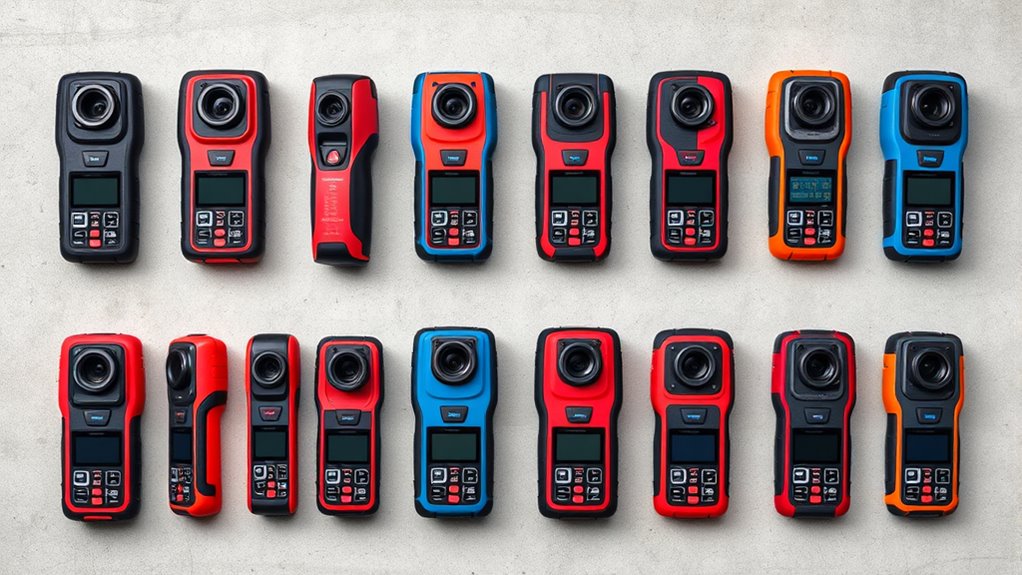 Ever wonder how to make certain you’re accurately locating studs behind walls? The answer lies in a stud finder’s display and alert system. A clear, backlit LCD screen is essential, especially in low-light conditions, as it shows the exact location, edges, and centers of studs. Visual alerts like LED indicators or on-screen graphics provide quick, intuitive feedback on detection status and object position. Complementing these are audio signals or beeps, guiding you precisely without needing to constantly look at the screen. Dual alerts—visual plus audio—significantly improve accuracy and ease of use. Some models even display battery life or detection confidence levels, helping you ensure the device’s readiness and reliability during your project. A good display and alert system makes wall scanning more straightforward and dependable.