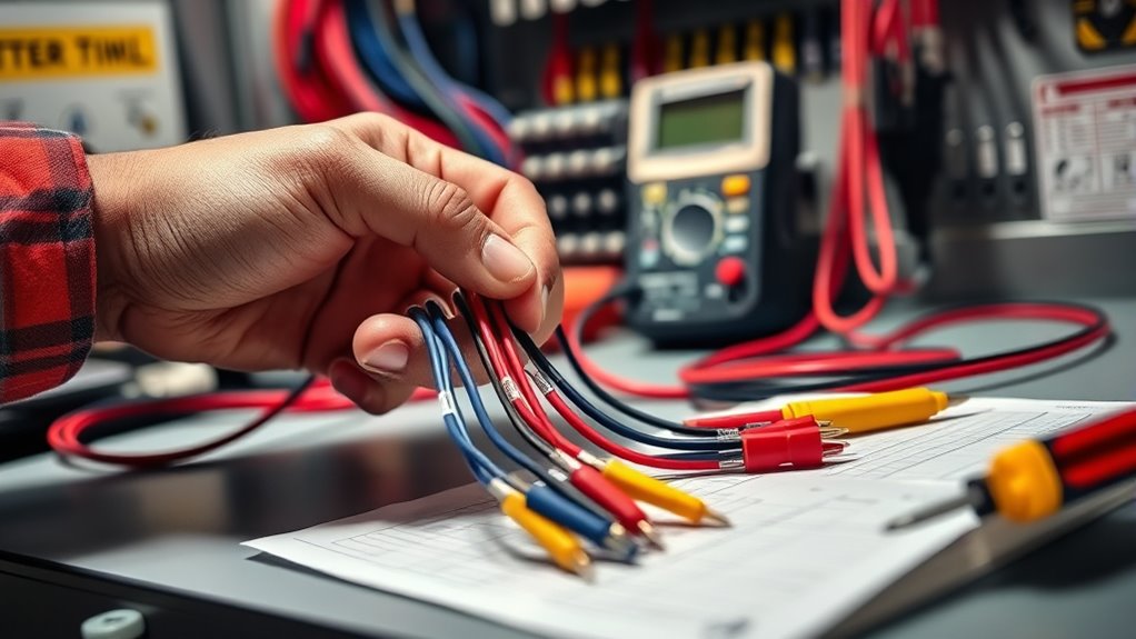 Did you know that electrical accidents happen more often during installations? I always wear insulated gloves and safety goggles to protect myself. I turn off the main power before starting, double-check all connections, and follow local codes strictly. Using a voltage tester guarantees circuits are dead before working. Staying cautious and methodical minimizes risks, and I never rush—safety’s always my top priority during transfer switch wiring.