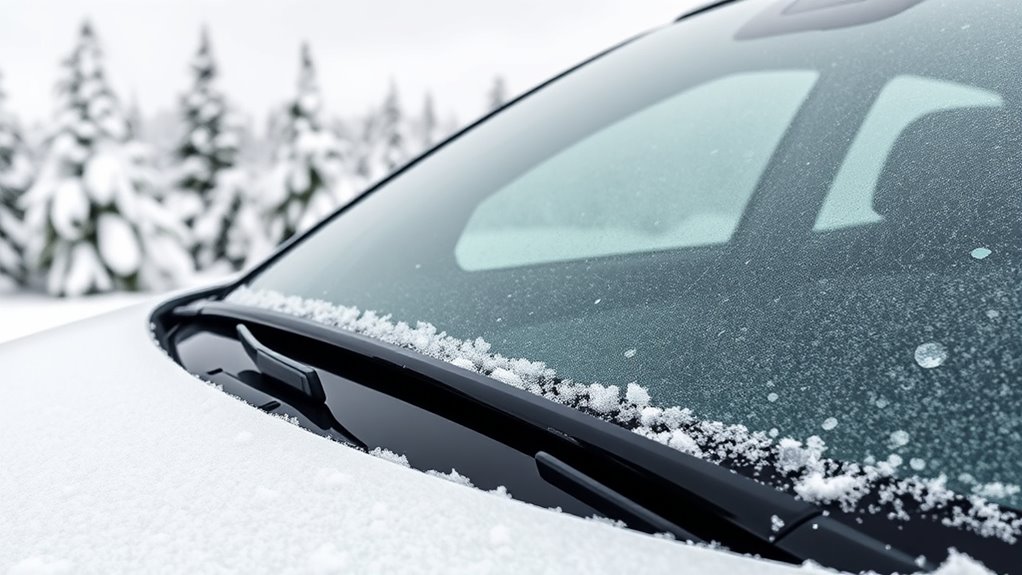 When selecting a magnetic windshield frost guard, paying attention to weather resistance is vital to guarantee it performs well in harsh conditions. I look for covers made from waterproof, tear-resistant materials like Oxford fabric or reinforced polyester, which can withstand snow, ice, and moisture. Embedded magnets or magnetic edges are essential to ensure a secure, windproof fit, preventing the cover from blowing away in strong gusts. UV-resistant coatings or treatments protect against sun damage and fading during summer months. Additional features like sealed seams, reinforced edges, and reflective strips enhance durability and visibility in various weather conditions. Finally, I check that the design resists frost buildup and ice formation, maintaining flexibility and effectiveness even in extreme cold temperatures.