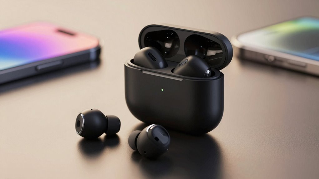 Since a stable connection is crucial for an enjoyable wireless earbud experience, paying attention to connectivity features is essential. Bluetooth 5.4 technology is a big plus, offering more reliable connections and lower latency than earlier versions. I look for earbuds with at least a 10-meter (33 feet) range, so I can move freely without losing signal. Automatic pairing is also a helpful feature, ensuring quick reconnections after initial setup and reducing dropouts. Multi-device compatibility allows me to switch seamlessly between my phone, tablet, or laptop without losing connection stability. A strong, stable signal minimizes audio lag and disconnections, which is especially important during calls or gaming. Overall, these connectivity factors ensure a consistent, frustration-free listening experience.