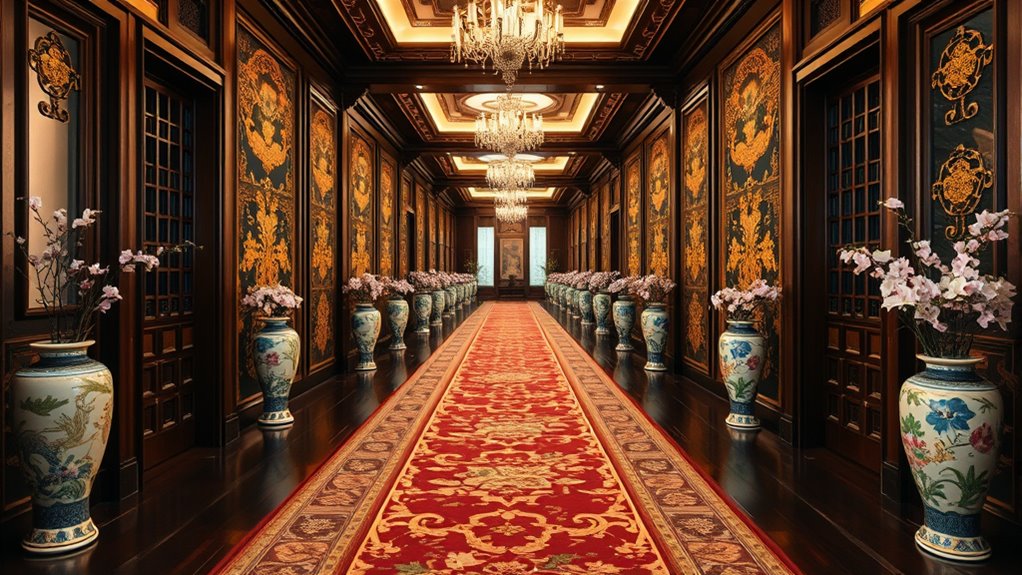 You’re wondering if Yilong Palace hallway silk runners are suitable for high-traffic areas. I believe they can work well because of their durability and elegant design, which adds sophistication without sacrificing practicality. However, I recommend choosing runners with a sturdy backing and easy-to-clean fabric to withstand frequent foot traffic. Overall, I think they can beautifully enhance busy hallways with proper maintenance and selection.