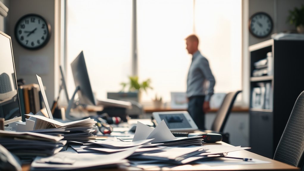 Boundary mistakes that drain your time often stem from being vague about your limits, failing to enforce rules, and saying yes to every request. Overcommitment, neglecting self-care, and inconsistent boundaries help others take advantage of your availability, leading to burnout and wasted hours. If you ignore these pitfalls, your schedule will remain chaotic. Keep going, and you’ll discover ways to strengthen your boundaries for better time management and less stress.