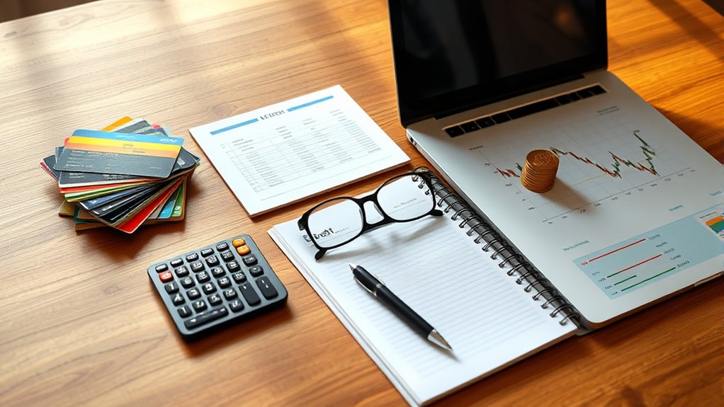 Before choosing between debt payoff and investing, focus on building an emergency fund with 3-6 months of expenses. This safety net prevents setbacks from unforeseen events and provides financial stability. Once you’re secure, prioritize paying off high-interest debt quickly, then consider investing, especially if your employer offers a match. Balancing both strategies thoughtfully can improve your overall financial health—if you’re curious about the best approach for your situation, there’s more to explore.