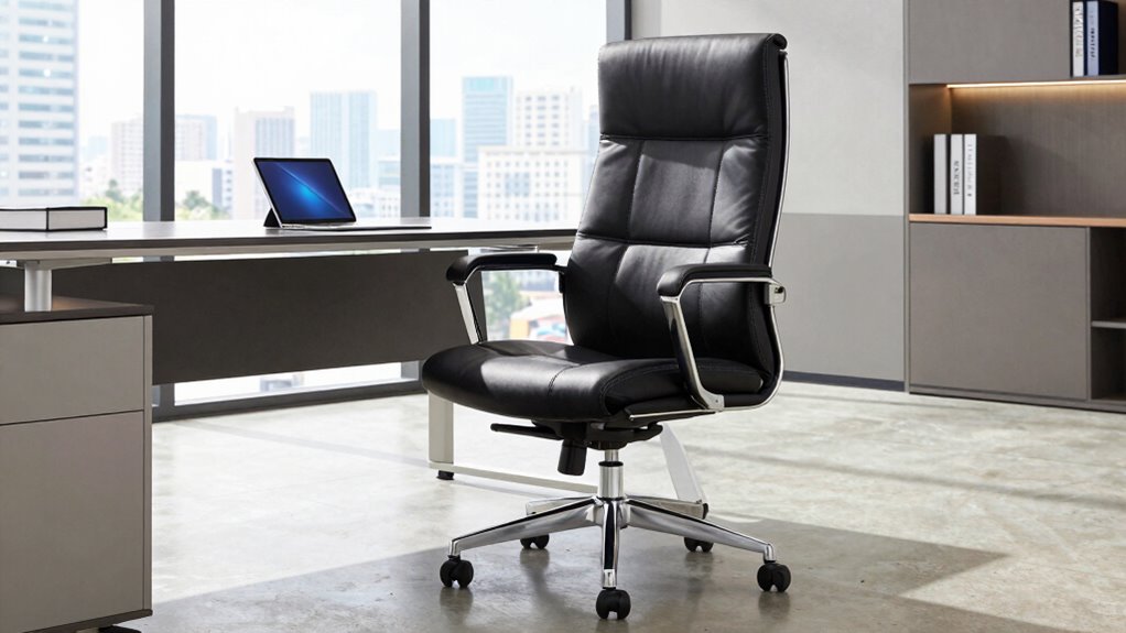 Ever wondered what sets high performers apart in their workspace? It’s often the details that make the biggest difference, and one of those details is the choice of an executive desk chair. High performers understand that comfort and support are essential for maintaining focus and productivity throughout long work hours. That’s why they gravitate toward executive desk chairs designed with ergonomic features. These chairs are crafted to support proper posture, reduce strain, and prevent fatigue, ensuring you stay alert and engaged. The ergonomic design isn’t just about comfort; it’s a strategic investment in your performance. Additionally, many high performers consider the essential gear that complements their workspace, such as ergonomic accessories and supportive furniture, to optimize their environment for success. Incorporating ergonomic principles into your office setup can further enhance comfort and productivity. Beyond functionality, high performers are also drawn to the design aesthetics of executive desk chairs. These chairs don’t just support your body—they elevate the visual appeal of your workspace. A sleek, sophisticated chair can communicate professionalism and confidence, reflecting your high standards and commitment to excellence. When your workspace looks polished and well-thought-out, it boosts your own motivation and creates a positive environment for clients or colleagues who visit. The aesthetic appeal of these chairs isn’t superficial; it aligns with your overall image of success, helping you make a strong impression and fostering a sense of pride in your workspace. Incorporating workspace design principles can help create a cohesive environment that promotes productivity and motivation. Choosing an executive desk chair with a compelling combination of ergonomic features and design aesthetics shows you value both function and form. It’s a statement that you prioritize your health and efficiency without sacrificing style. High performers know that investing in quality equipment isn’t an indulgence but an essential part of their strategy for success. With the right chair, you’re not just sitting; you’re creating an environment that encourages productivity, supports your well-being, and reinforces your professional image. Understanding the importance of home office ergonomics can help you further optimize your workspace for comfort and efficiency. The seamless blend of ergonomic support and aesthetic appeal in executive desk chairs makes them a key element for anyone aiming to elevate their performance and project confidence in their workspace. In the end, your choice of chair isn’t just about comfort—it’s about setting yourself up for sustained success.