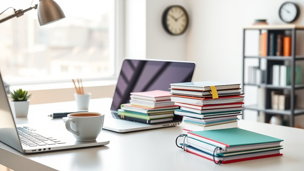 By stacking habits, you can effortlessly boost your productivity. Imagine you start syncing your morning coffee ritual with reviewing your to-do list—soon, it becomes second nature to plan your day while sipping your brew. Like Sarah, who combined stretching with listening to her favorite podcast, she found her mornings more energized and focused. Start small, build these chains, and watch your efficiency grow. Habit stacking makes success feel natural and achievable—so why not give it a try today?
