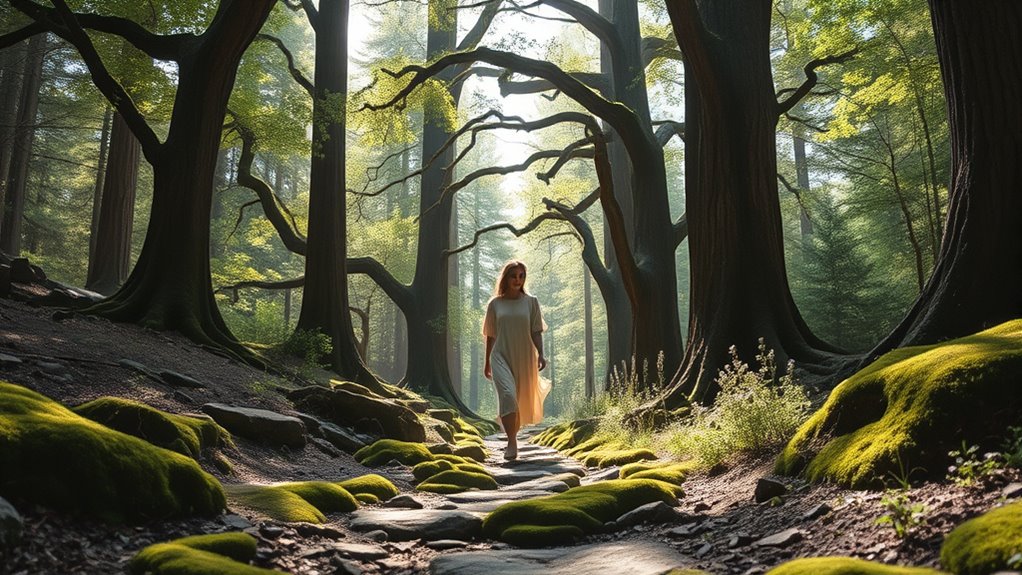 Mindful walking turns your usual steps into a calming meditation on the move. Focus on each step, feeling your heel touch the ground and sensing your body’s movements. Pay attention to your surroundings without judgment, helping quiet mental chatter and reduce stress. This practice boosts your sense of stability and clarity while connecting you with the present moment. Keep exploring, and you’ll discover simple ways to deepen your walking meditation and enjoy lasting benefits.