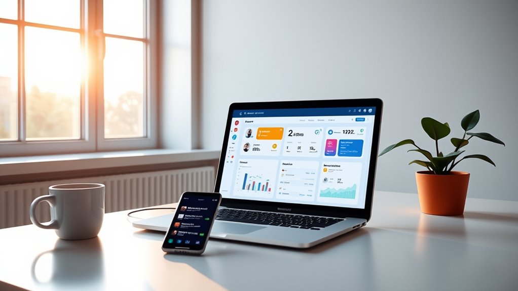 Have you ever wondered how you can automate repetitive tasks without coding? No-code automation platforms are your answer. These tools let you create workflows using visual interfaces, drag-and-drop components, and simple logic. You don’t need programming skills to connect apps, set triggers, or define actions. Platforms like Zapier, Airtable, and Integromat streamline tasks such as data entry, email responses, and social media posting. They are designed for ease of use, making automation accessible to everyone. Instead of writing complex code, you build processes by selecting options and mapping out steps visually. This approach speeds up your work, reduces errors, and frees your time for more strategic activities. No-code platforms empower you to implement automation quickly and efficiently, even if you’re not a developer. Additionally, understanding workflow customization allows you to tailor automations to your specific needs, increasing their effectiveness. Recognizing the importance of emotional support can also help you maintain motivation and resilience during the process. Furthermore, leveraging specialized templates can help you get started faster by providing pre-built automation structures suited to common tasks. Incorporating visual programming principles can further simplify complex automation setups, making them more intuitive for users.