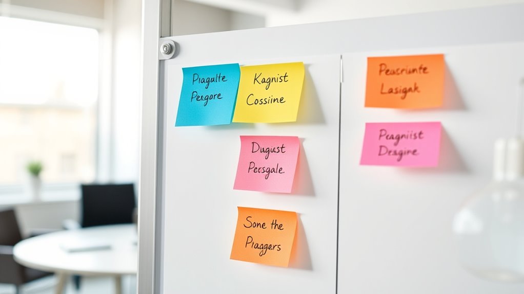 Imagine you’re a freelance designer juggling multiple projects. You should review your Kanban board daily or at least every couple of days to keep your workflow smooth. Regular review frequency guarantees you notice bottlenecks early and update your board promptly. Set a routine, like a morning check-in, to keep your board current, helping you stay organized and adapt quickly to new priorities or challenges.
