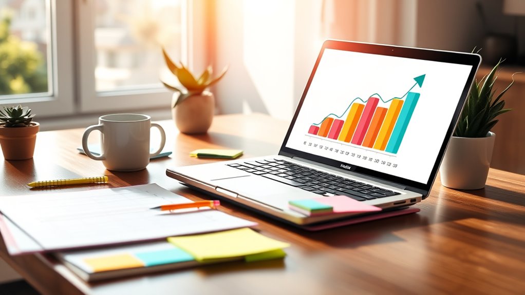 You can effectively track your personal OKRs using digital tools like Notion, Trello, or Asana, which offer customizable dashboards and reminders. Paper planners are also great for keeping your goals visible and organized daily. Combining digital tools for tracking progress with paper planners for reflection helps you stay focused and motivated. Whichever method you choose, make sure it’s consistent to see your goals compound over time.