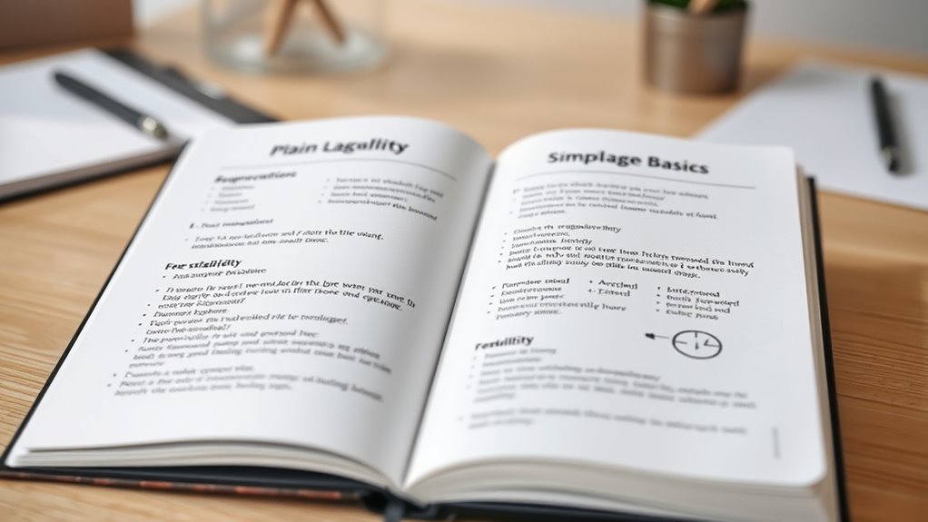 You should avoid jargon pitfalls and overly technical language because they can confuse your readers. Don’t assume they understand specialized terms or legal phrases; instead, use plain language that’s easy to grasp. Be careful not to over-simplify or lose accuracy, and avoid lengthy, complex sentences. Always review your writing to guarantee clarity, and ask someone else to read it for understanding. Clear, straightforward language helps your message reach everyone effectively.
