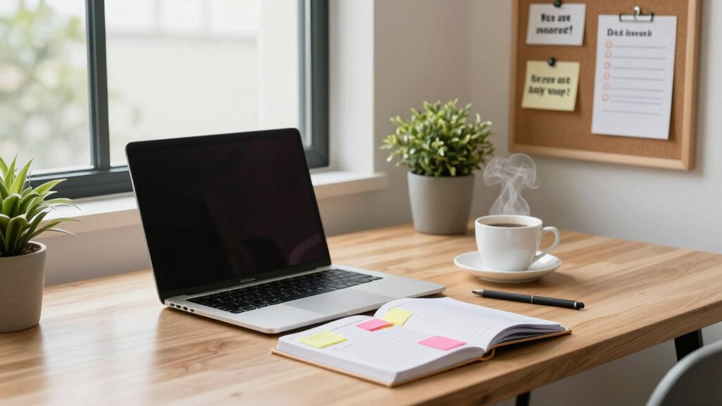 They say, “Work smarter, not harder,” and that’s especially true for remote work. Focus on establishing solid remote habits like setting clear digital boundaries—turn off notifications and designate specific work hours. Create a dedicated workspace to help you switch between work and leisure. Regular breaks boost productivity, and staying connected with colleagues maintains team cohesion. Adopting these rules helps you stay productive and balance your work-life harmony.