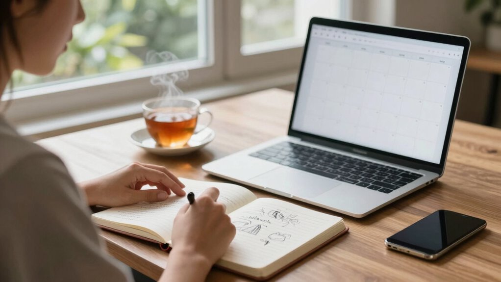 Mindfulness plays a vital role in planning by enhancing your emotional awareness and focus. Practicing mindfulness meditation helps you stay present, reducing impulsive reactions. When you’re emotionally aware, you can recognize distractions or stress triggers early, allowing you to pause and choose a thoughtful response. This mental clarity improves your ability to set realistic goals and prioritize tasks effectively, making your planning more intentional and less reactive.