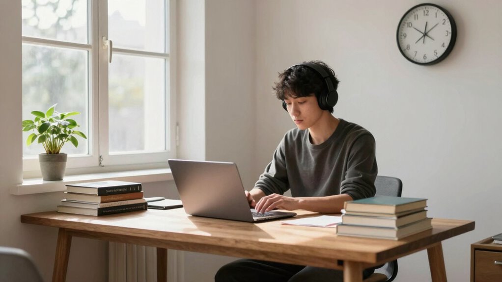 Ever wonder what tools can boost your focus during deep work? You can use distraction management apps like Freedom or Cold Turkey to block interruptions, ensuring you stay committed. Focus enhancement tools like Forest or Pomodoro timers help you maintain concentration by breaking work into manageable intervals. These tools keep you on track, minimize distractions, and foster sustained attention, making your deep work sessions more productive and rewarding amid a busy schedule.
